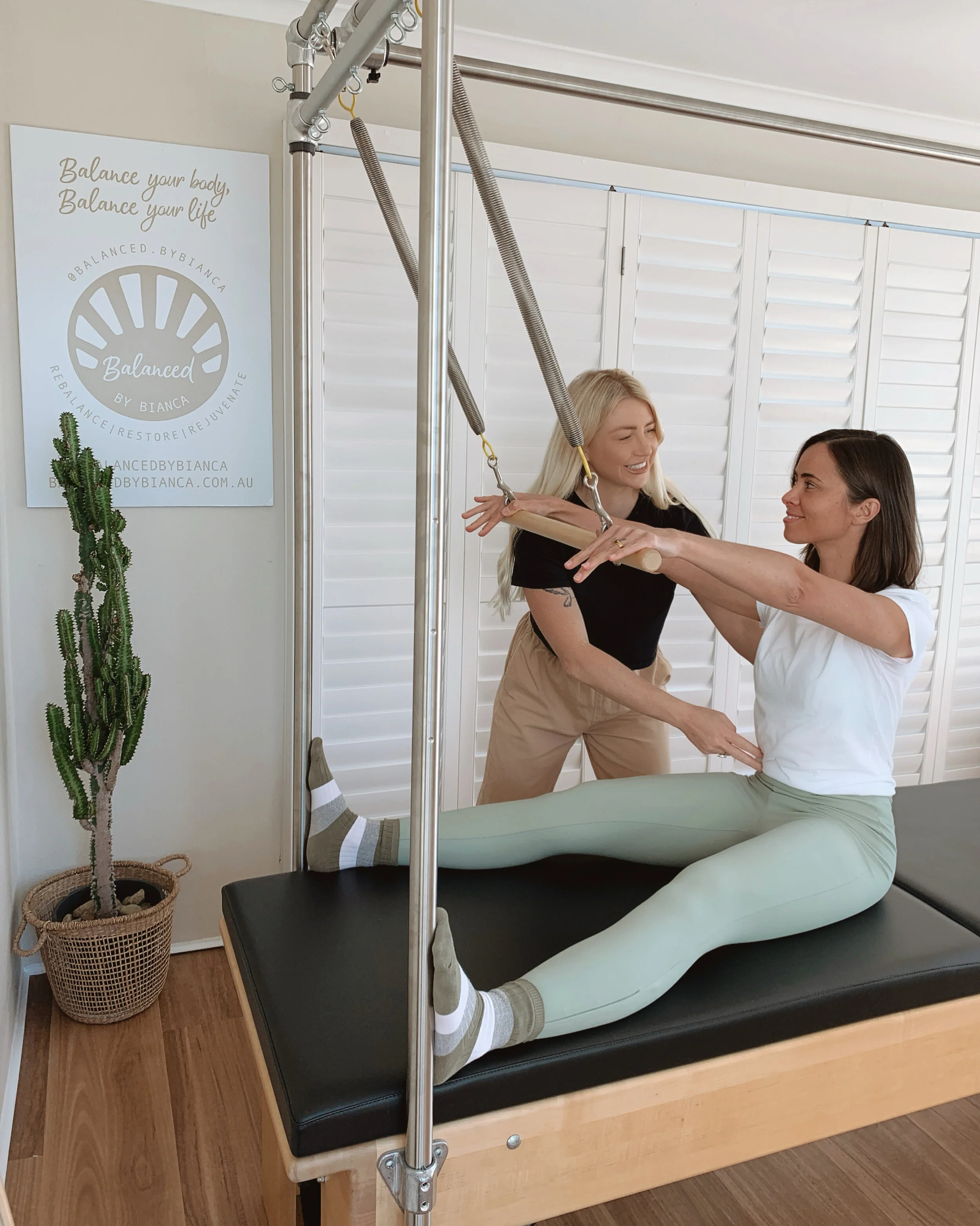 Welcome to Balanced by Bianca's Home Pilates Studio, where your wellness journey finds its perfect balance. Immerse yourself in a world of dynamic movement and holistic wellness, where our signature equipment - the reformer, trapeze, Wunda chair, and ladder barrel- each designed to elevate your Pilates experience to new heights.